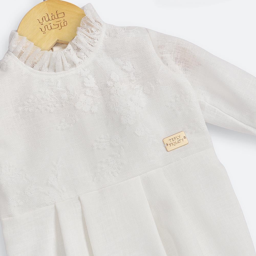 افرول استقبال قطني 100% مكون من أربع قطع يتميز بأكمام طويلة وكباسات تسهل عملية الارتداء