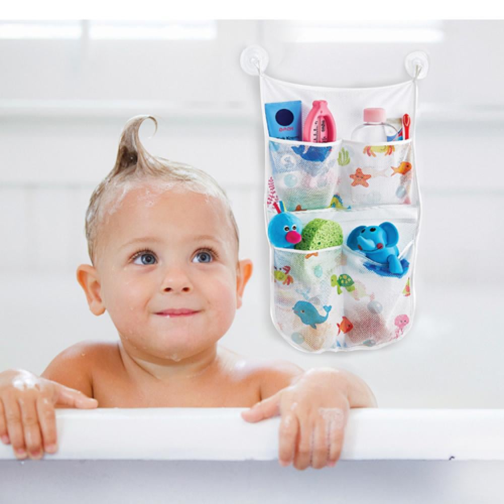 حقيبة شبكية مثالية لتنظيم ألعاب وأدوات استحمام الطفل، حيث توفر ترتيبًا عمليًا دون شغل مساحة. مزودة بأكواب شفط قوية تلتصق بالأسطح الملساء بسهولة، مما يسهل الوصول إلى الأدوات أثناء الاستحمام.