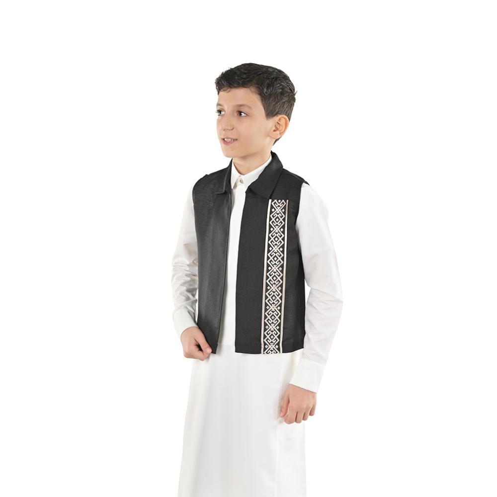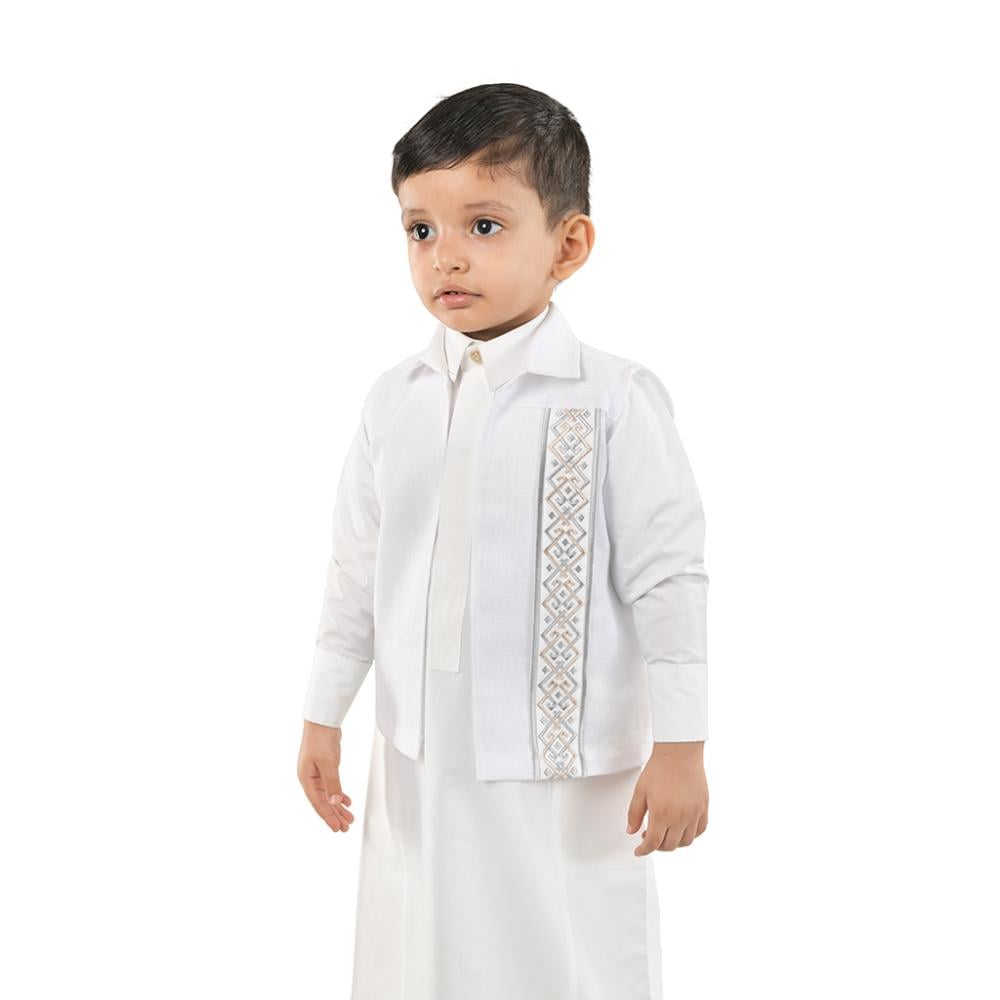سديري مصمم بأسلوب يمزج بين الحداثة والتراث، يجمع بين الراحة والأناقة الشرقية الأصيلة للأطفال. مصنوع من أقمشة ناعمة توفر الراحة وحرية الحركة، مع تطريز أبيض معقد يعكس جمال النقوش العربية التقليدية.