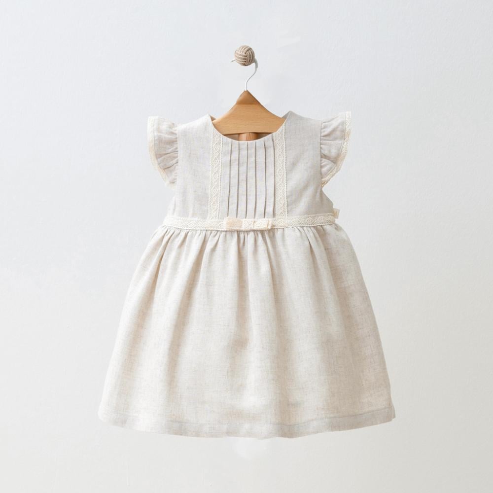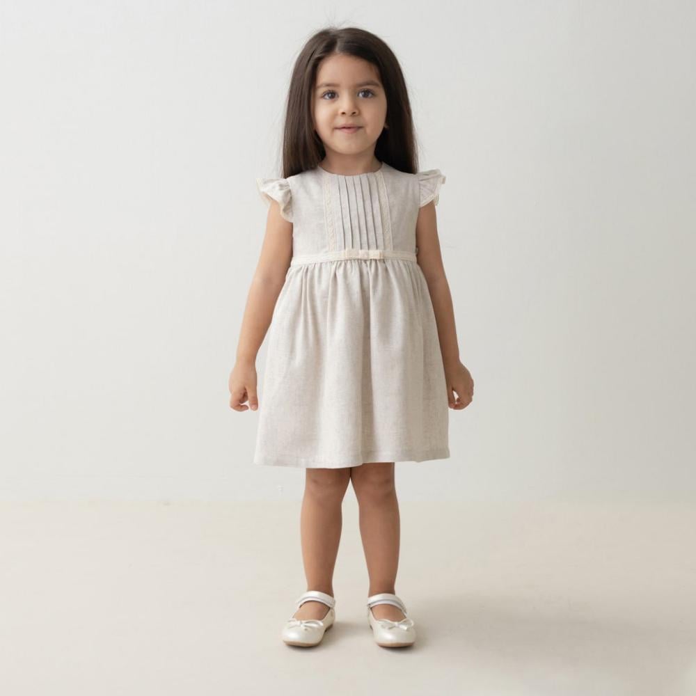 - واحد من أجمل فساتين اطفال للعيد بتصميم أنيق مصنوع من الكتان الطبيعي.
